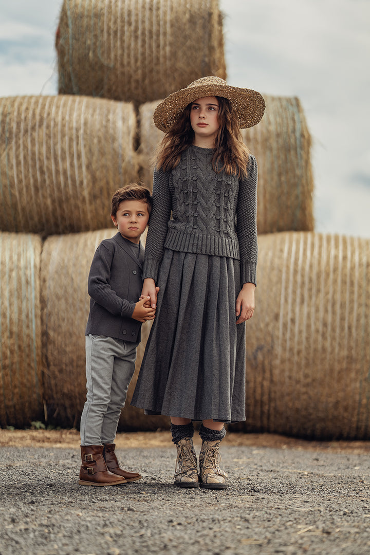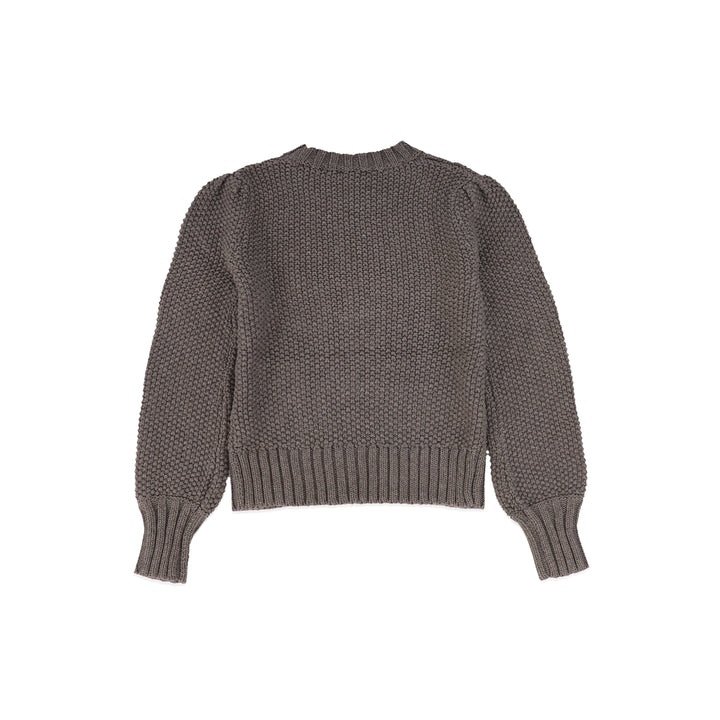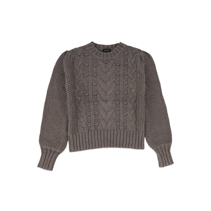 C14642-CABLE KNIT PUFF SLEEVE SWEATER-Mocha