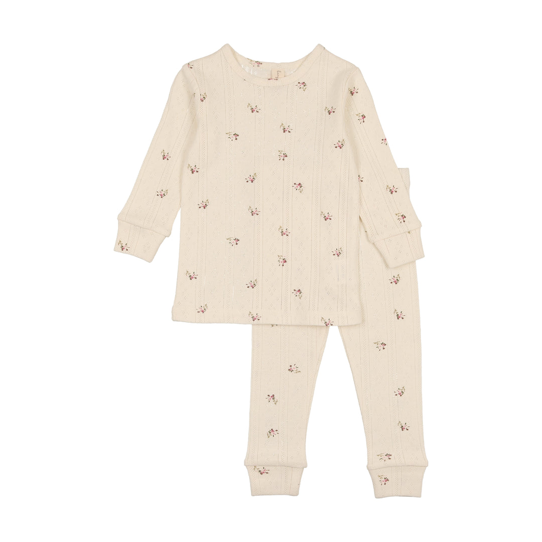 SL250124S-Printed Pointelle Long Sleeve Set-Ivory Bouquet