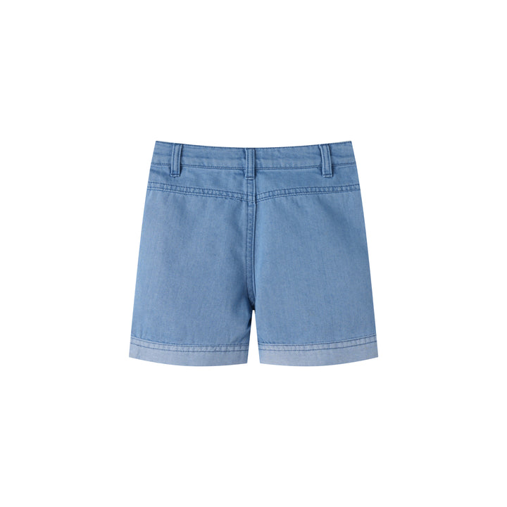 CUFFED SHORT PANTS-DENIM