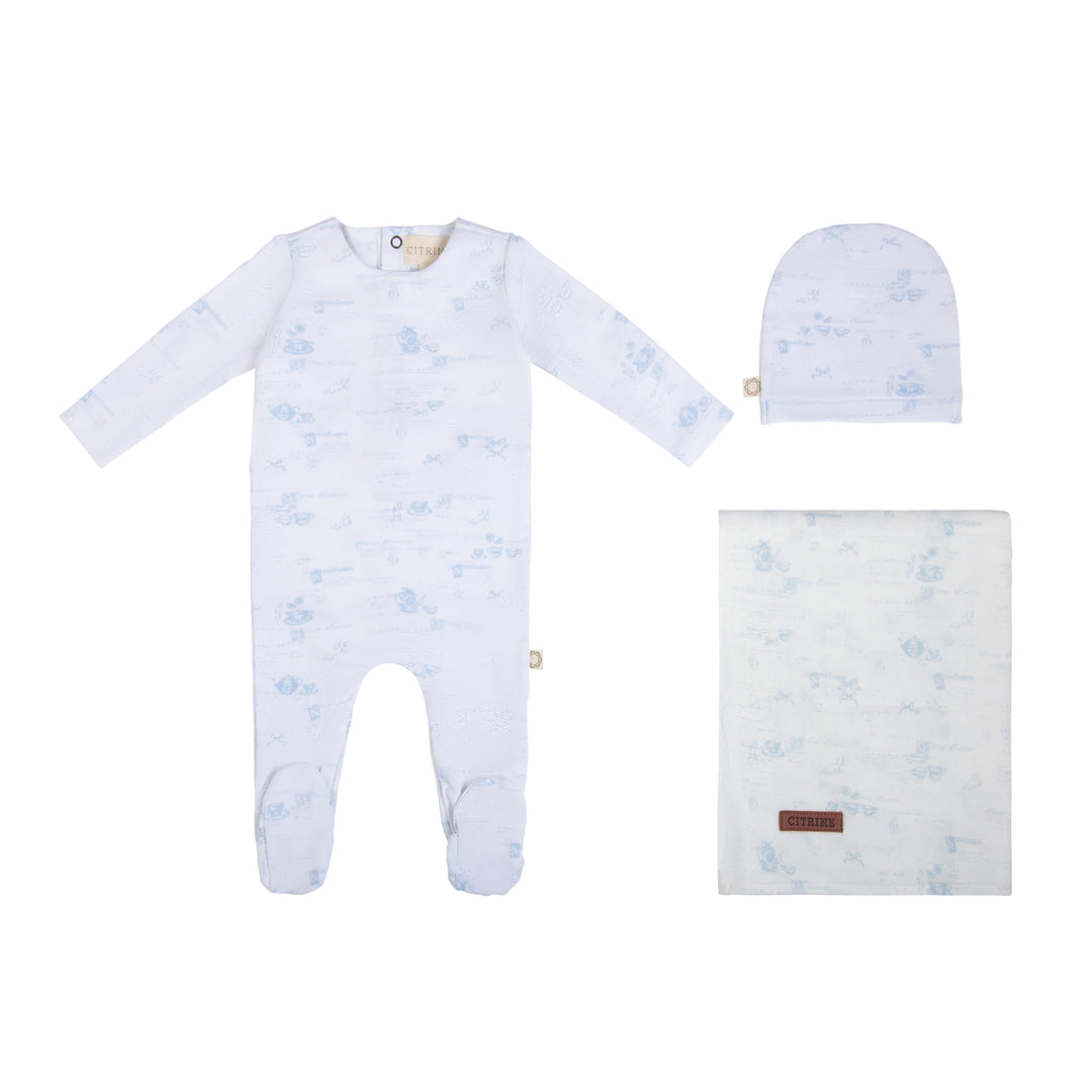 Tea Party SWADDLE Set-Vintage Blue Dark