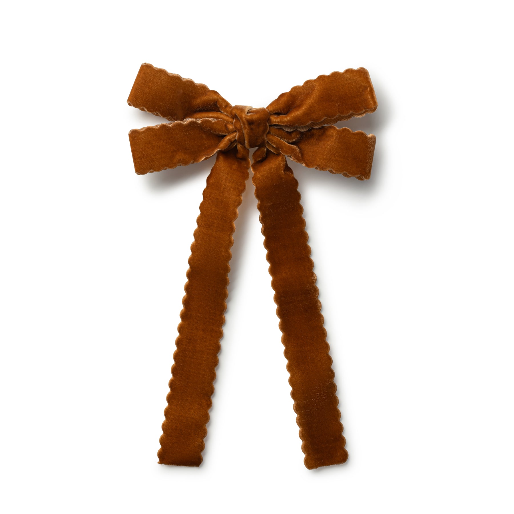 opall007-Opaline scalloped velvet long tail clip-caramel
