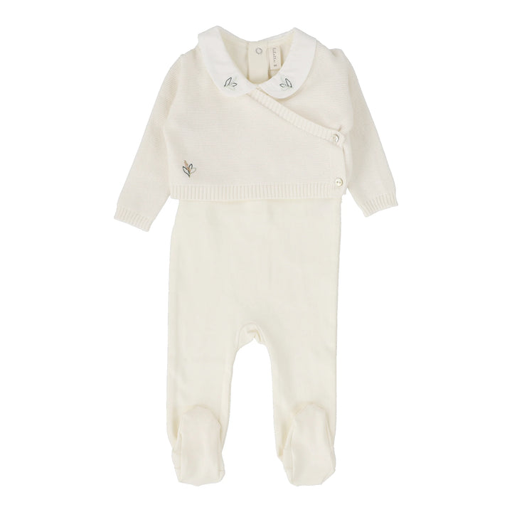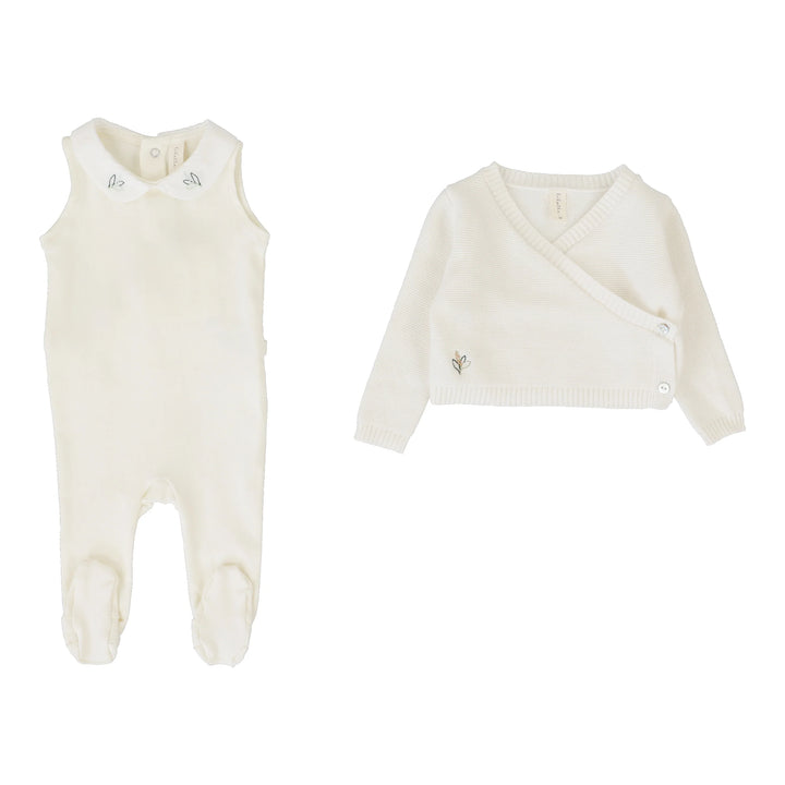 KNIT WRAP SLEEVELESS FOOTIE SET-Cream