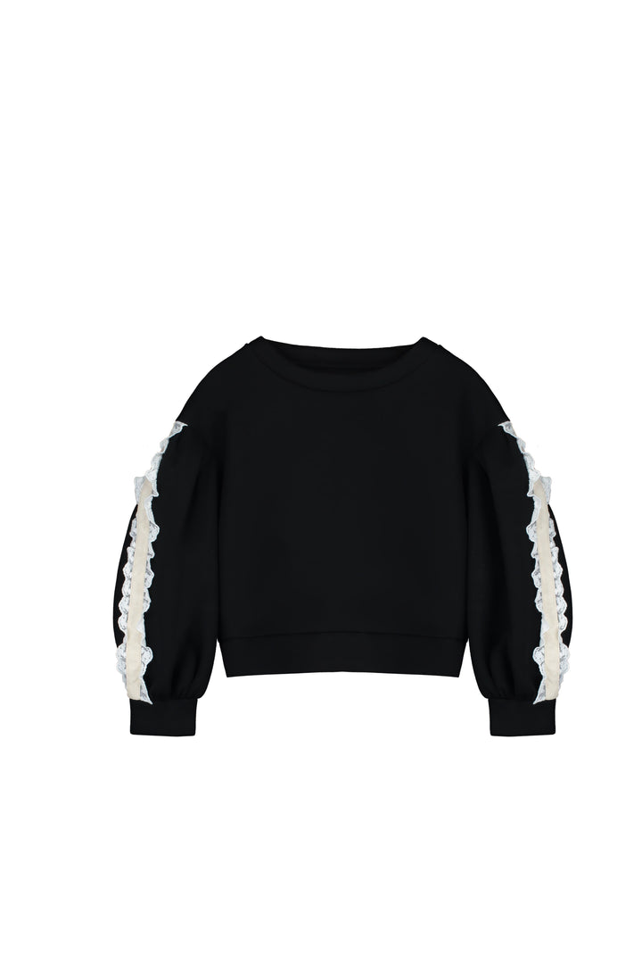 Neoprene Lace Ballon Sweatshirt-Black