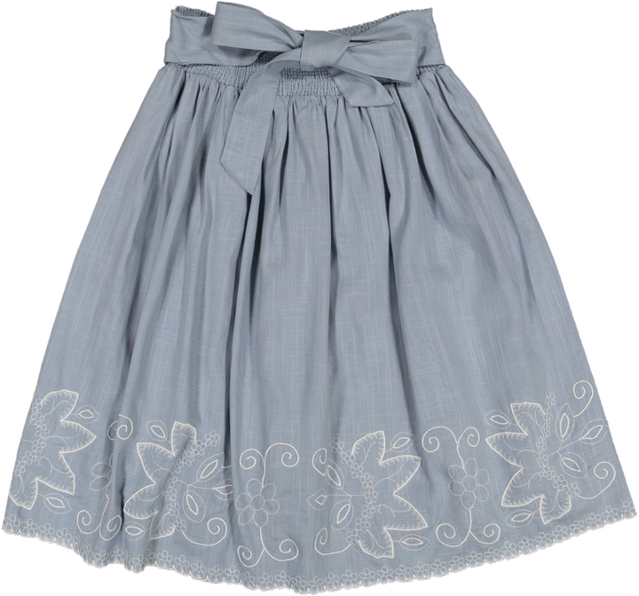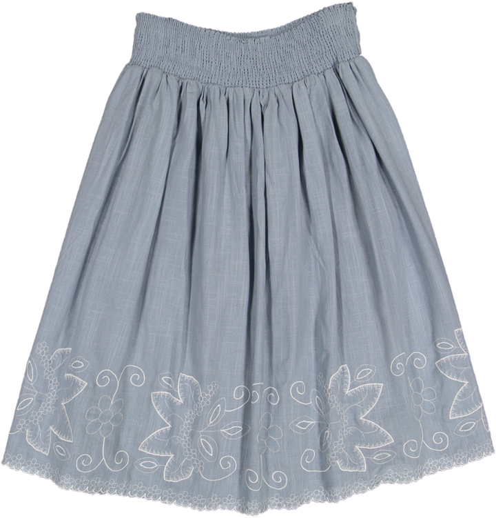 TS5025S-BLUE SMOCKING WAIST EMBROIDERY BOTTOM LINEN SKIRT