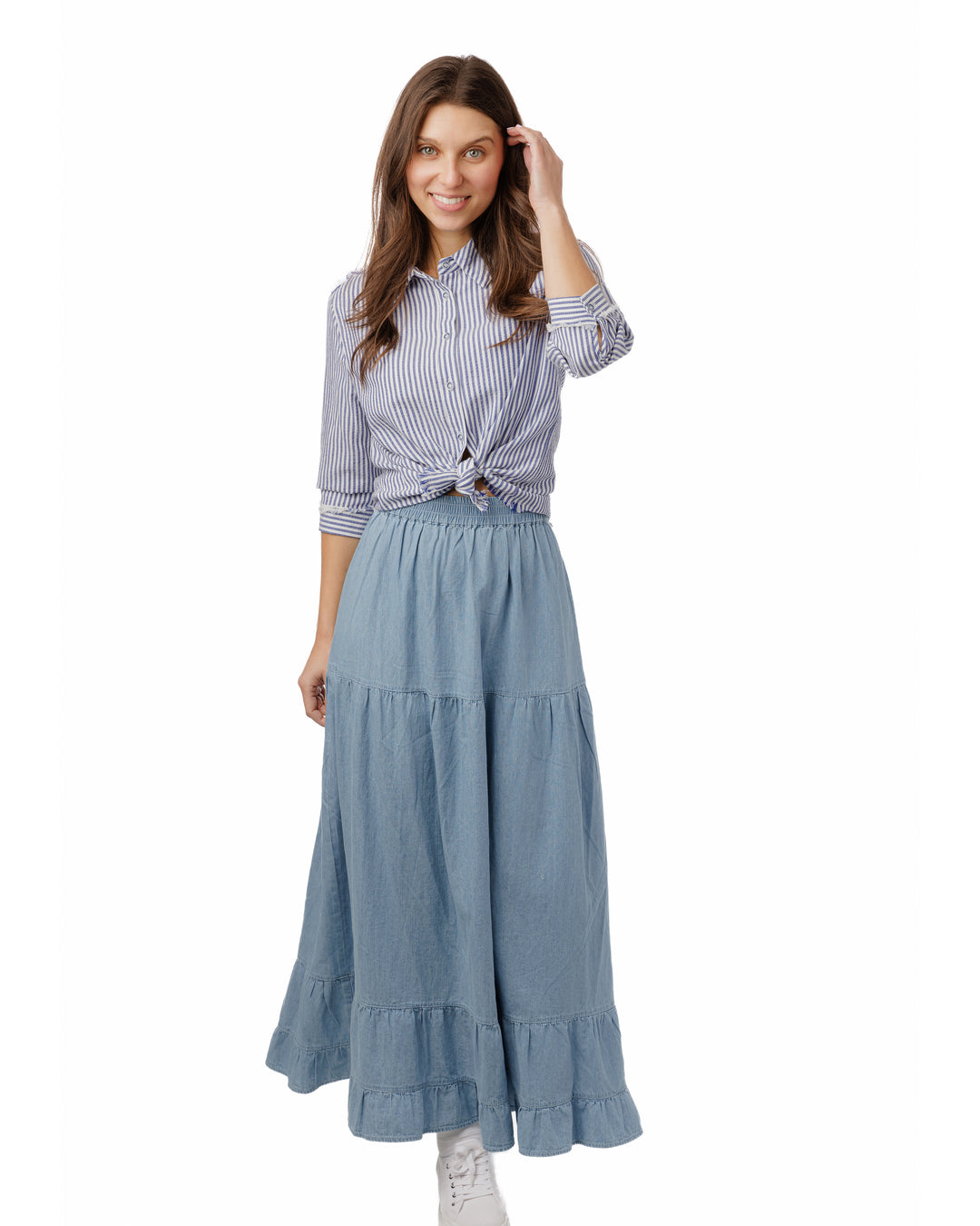 WS5072ST-LIGHT BLUE DENIM LAYER SKIRT