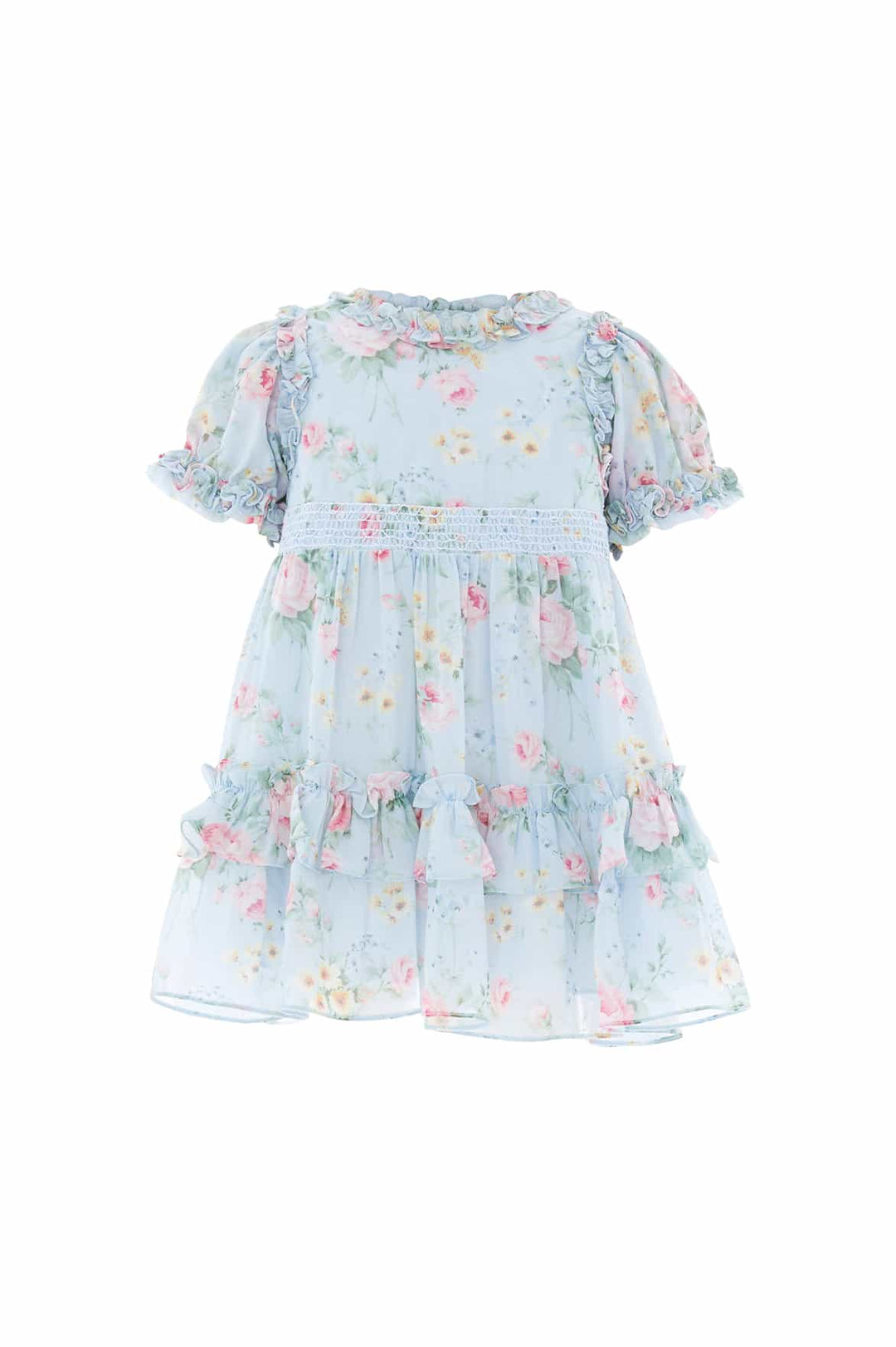 POMPADOUR GARDEN CHIFFON SMOCKED BABY DRESS-DUSK BLUE