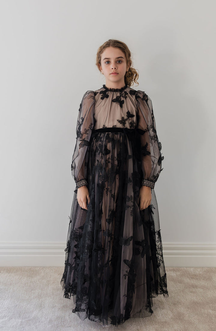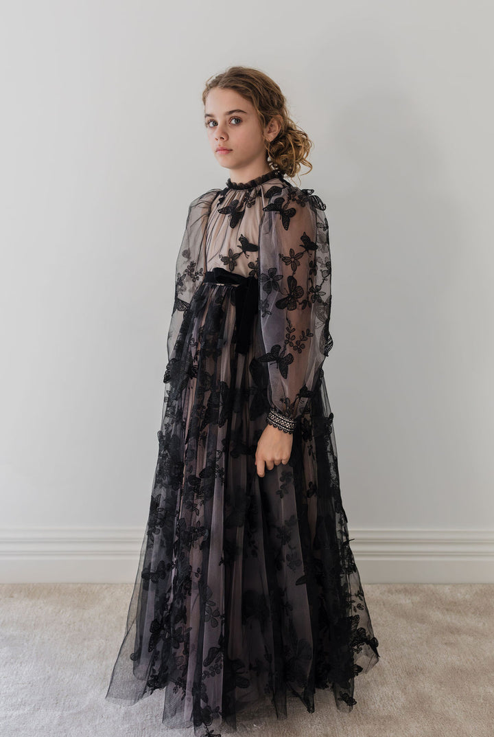 1214 GOWN-Butterfly Tulle W/Nude Lining-Black/Nude