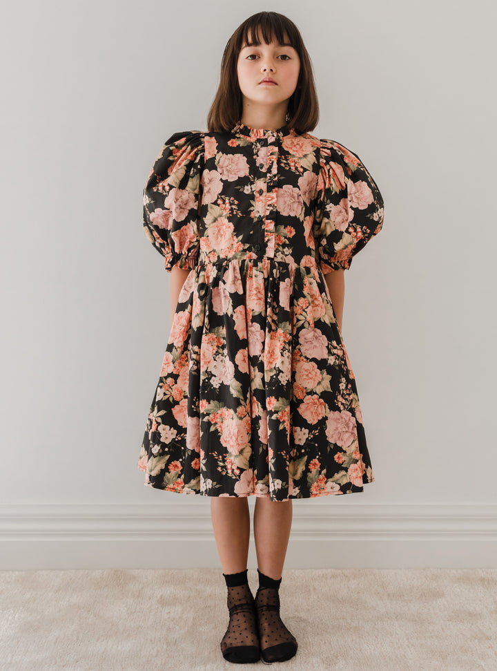 1228-Vintage Bloom Poplin Babydoll Dress-Print