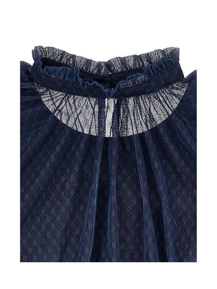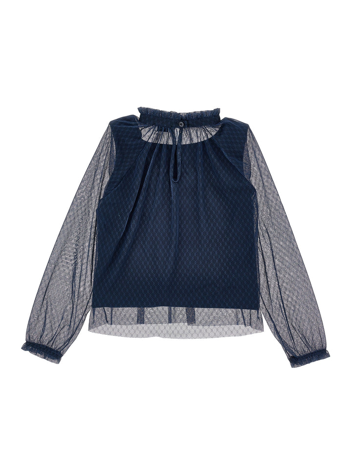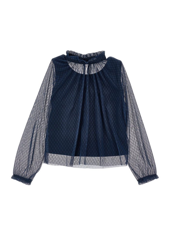 I1F309 6684-LS TULLE BLOUSE-NAVY