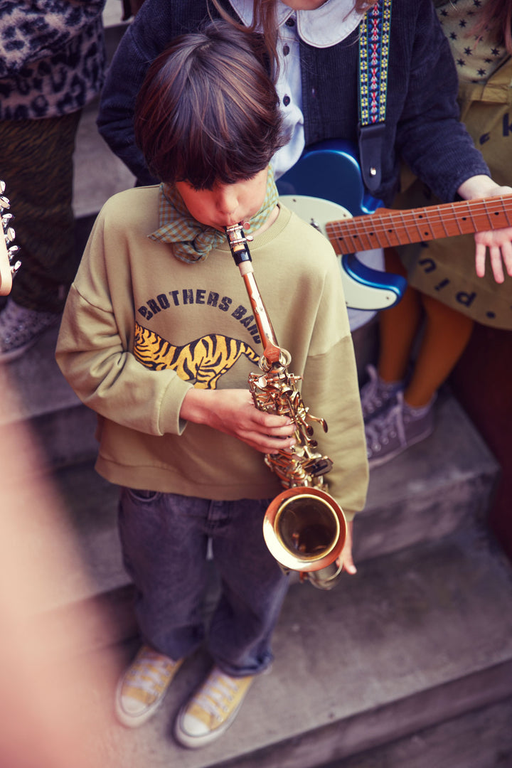 AW25.FLP2503A-Sweatshirt | Olive green w/ tiger print-olive green | carded organic cotton fleece