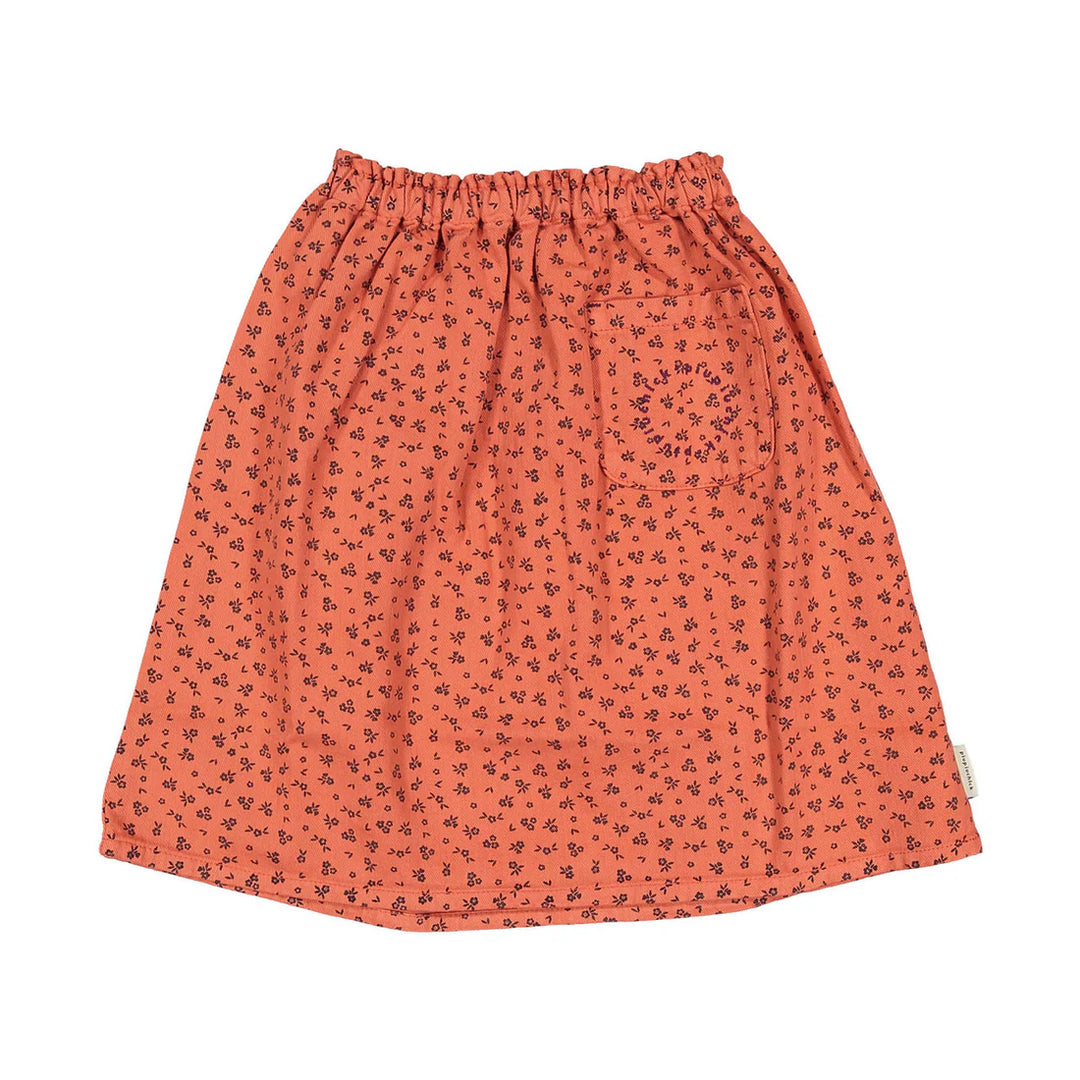 AW25.MN2508AUSA-Knee-lengh skirt elastic waist  | Raspberry w/ black flowers-raspberry | cotton twill