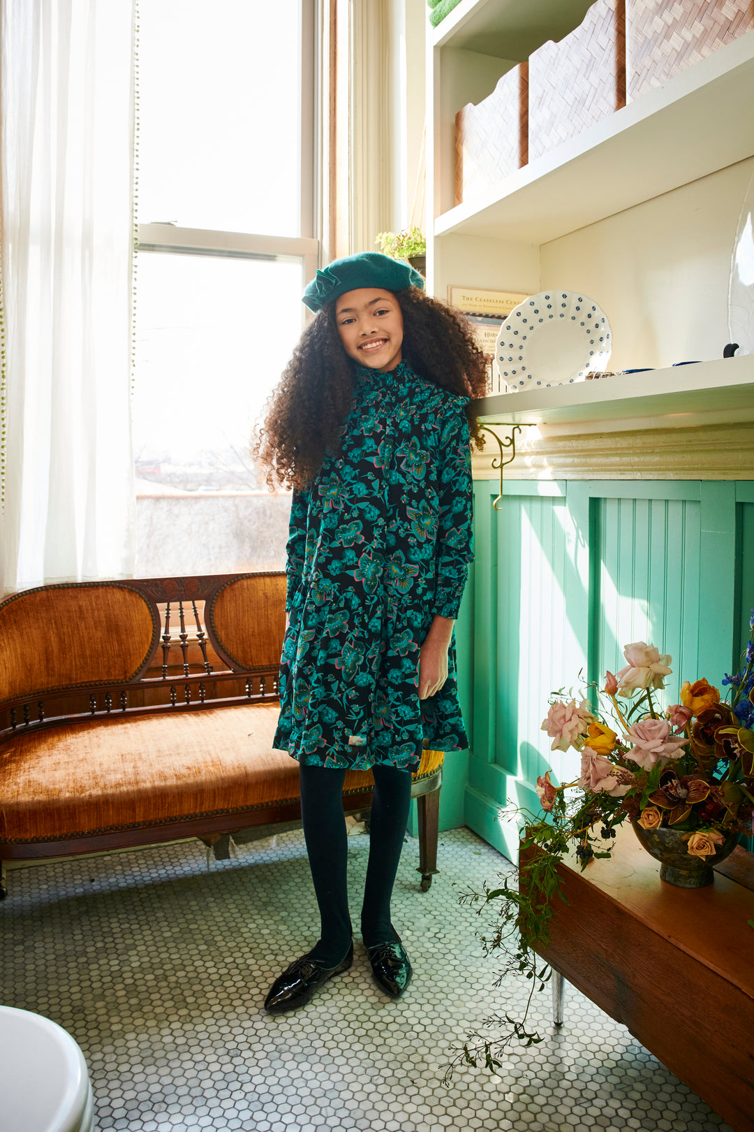 1905-SHIRRIGN DRESS-BLACK/TEAL