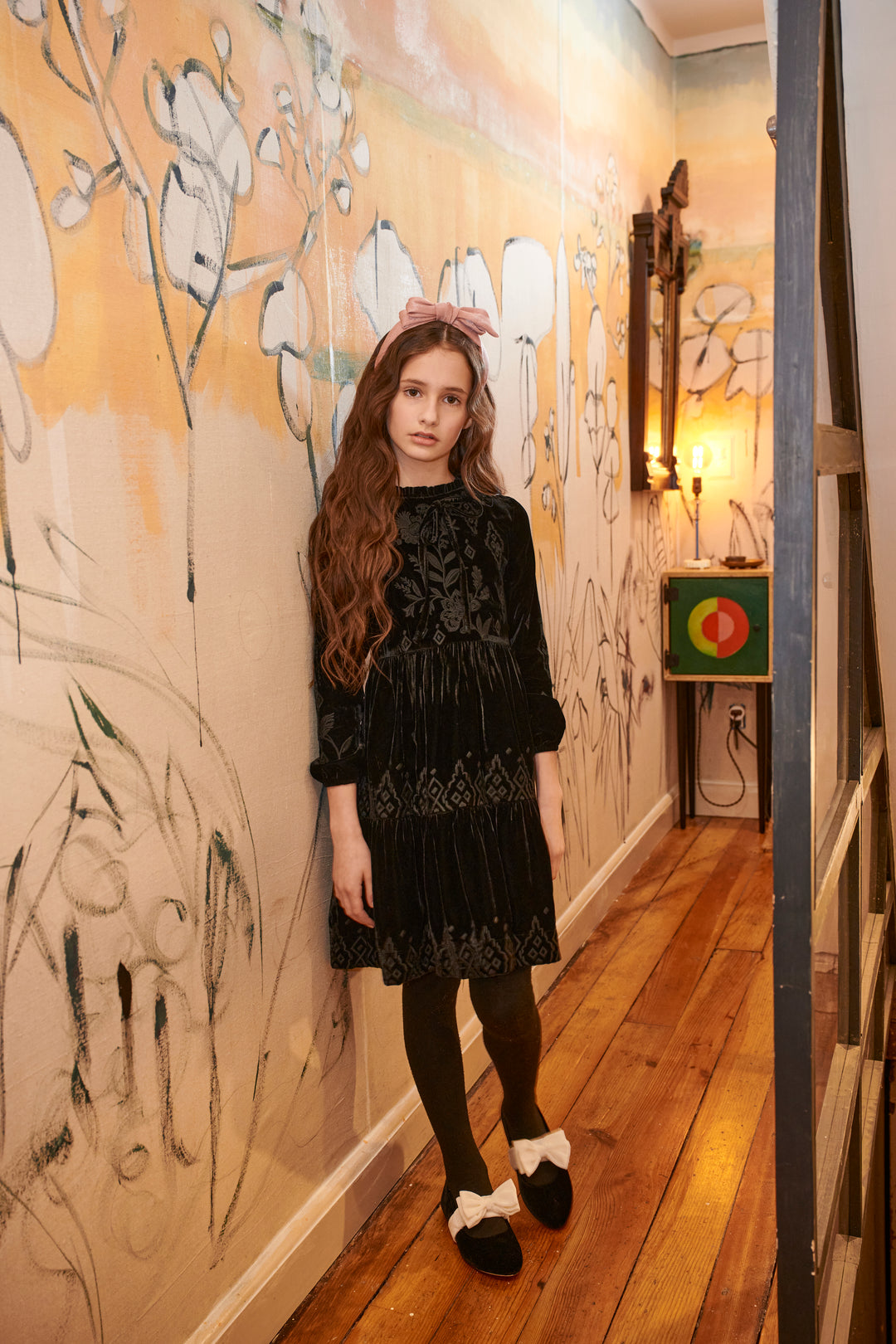1962-VELVET EMBROIDERED DRESS-BLACK/PINK