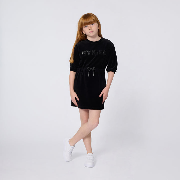 A00325-LOGO 3/4 SLEEVE DRESS-BLACK